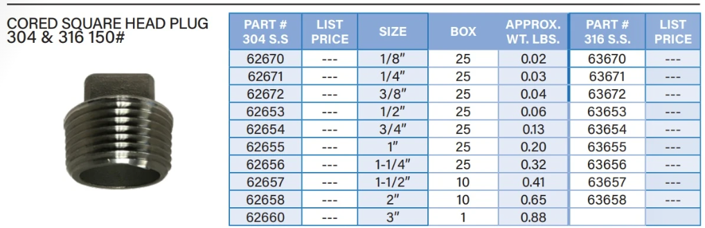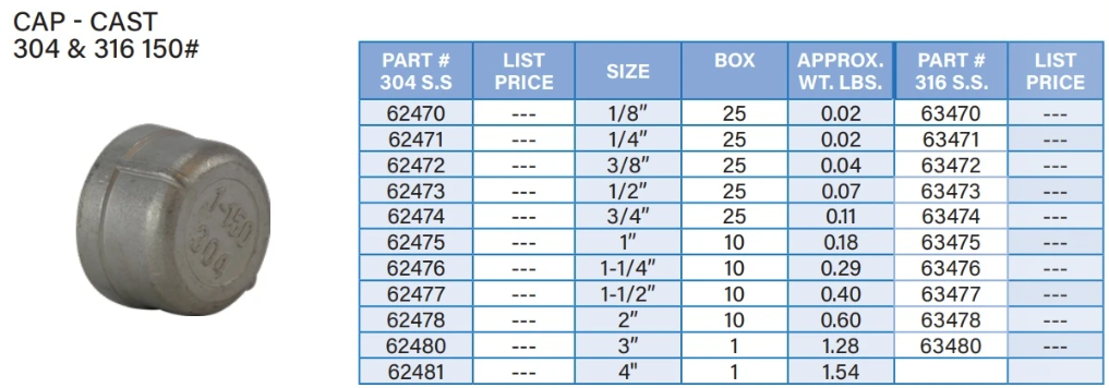 Stainless #150 Cap/Plug